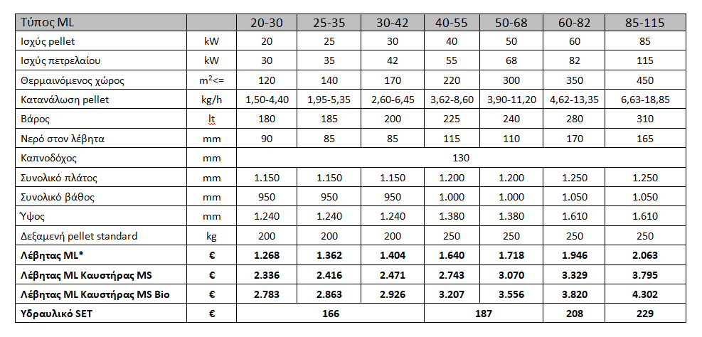 Το set λέβητα MLS, κατασκευάζεται σύμφωνα με τα ευρωπαϊκά πρότυπα και πληροί απόλυτα τις απαιτήσεις για υψηλή απόδοση οικονομίας και ελαχιστοποίηση των ρύπων.